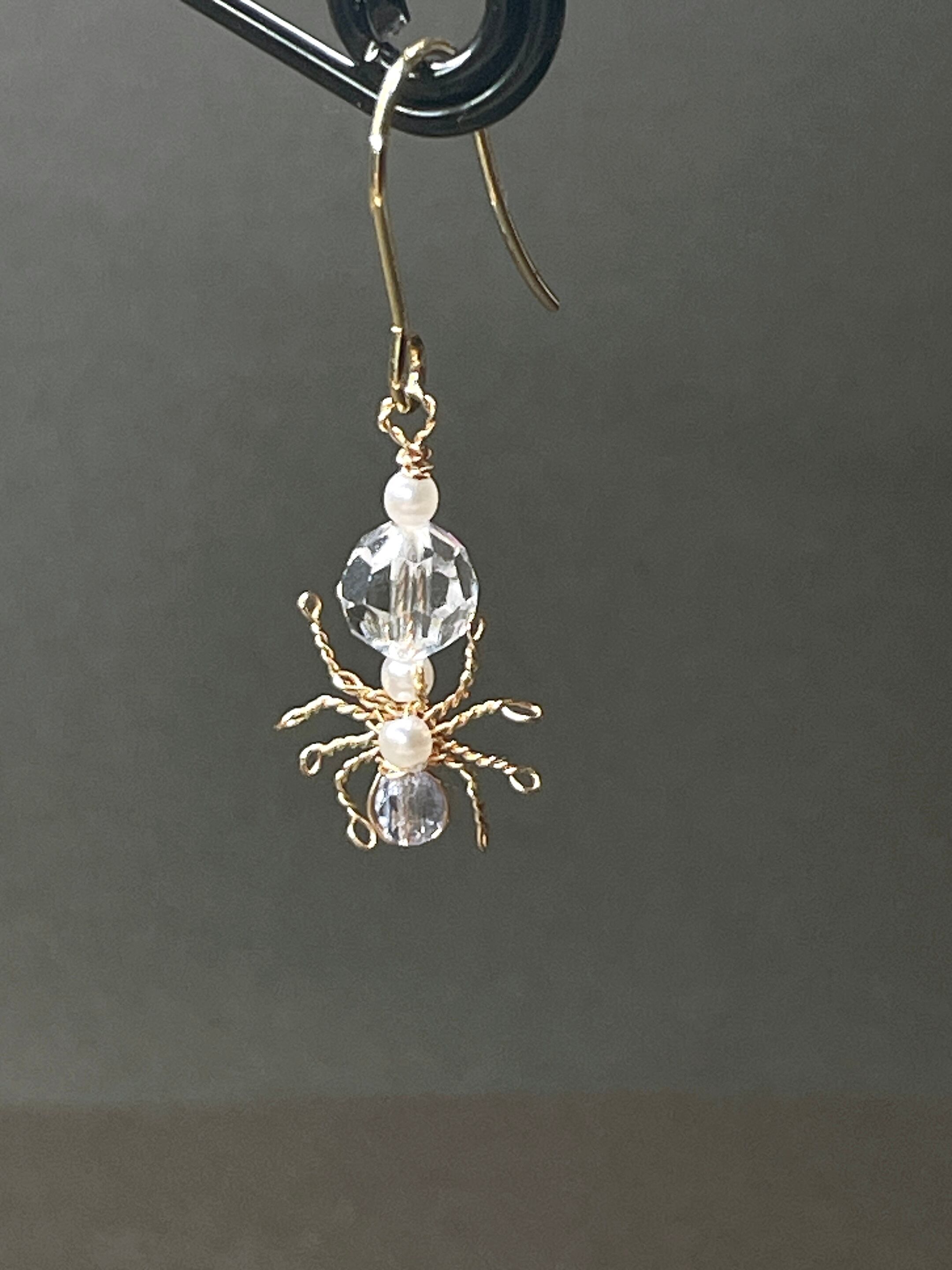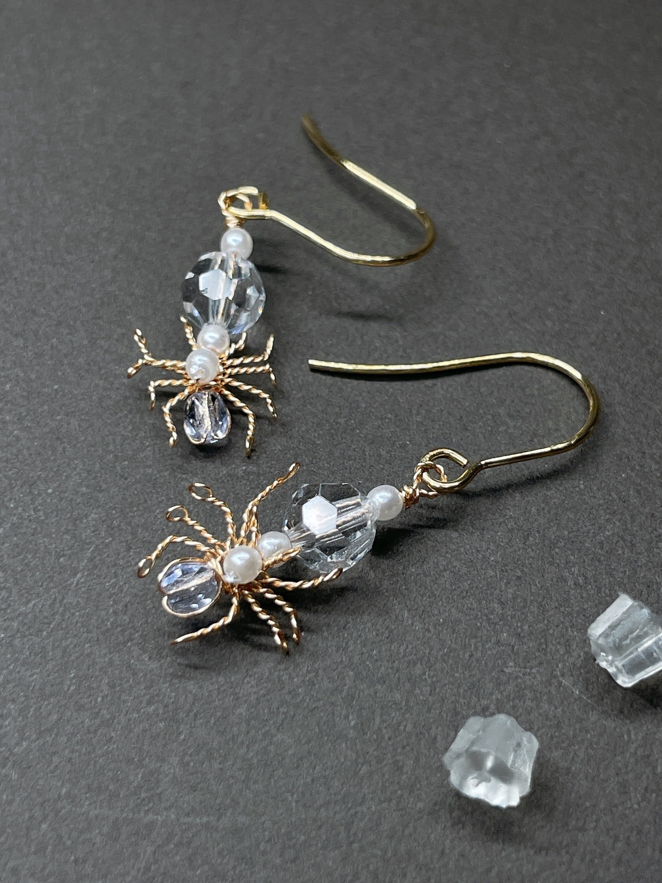 蜘蛛イヤーアクセサリー《白珠の小蜘蛛》パール×スワロフスキー